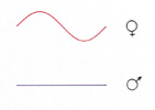 In der Heiligen Geometrie werden gerade Linien als männlich und geschwungene als weiblich betrachtet. Das männliche Prinzip wird meist als das durchdringende, direkte und aktive angesehen. Ein menschlicher Sinn, der diesem Prinzip entspricht, ist zum Beispiel der Sehsinn. Das weibliche Prinzip ist dagegen das sanfte, integrierende und aufnehmende Prinzip. Das beste Symbol dafür ist für mich das Ohr oder der Hörsinn.
